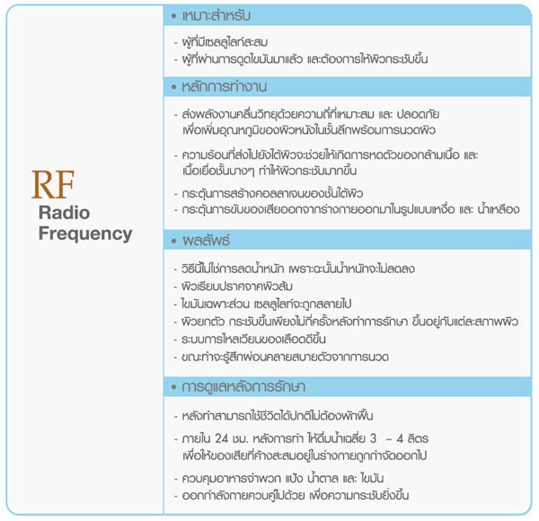 1. RF (Radio Frequency) การนวดสลายไขมันเพื่อผิวเรียบกระชับ