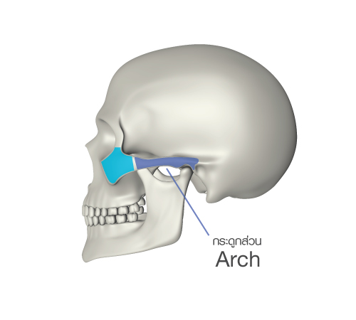 จะอยู่บริเวณโหนกแก้มด้านข้างของโครงสร้างใบหน้า หากศัลยแพทย์ได้ทำการพิจารณาโครงสร้างของกระดูกแล้ว พบว่า กระดูกบริเวณ Arch มีมากเกินไป ส่งผลให้ใบหน้าผิดรูป โหนกแก้มใหญ่ ใบหน้ากว้าง ก็สามารถที่จะตัดกระดูกส่วนนี้ออก  จากนั้นใช้วัสดุทางการแพทย์เชื่อมกระดูกเข้าหากัน โดยอาจจะทำร่วมกันระหว่างการกรอกระดูก และ ตัดกระดูกโหนกแก้มควบคู่กันตามความเหมาะสมของใบหน้าในแต่ละบุคคล