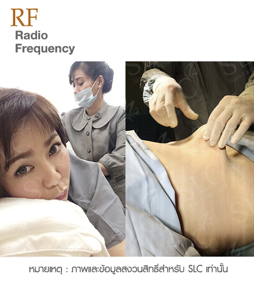 RF treatment is an innovation of beauty treatment by transmitting electromagnetic energy through the skin tissue, in the form of RF (Radio Frequency) waves at 0.3 - 0.5 MHz, which is a safe frequency. The electromagnetic energy increases the body temperature, stimulates collagen generation, enhances muscle and skin tissue firming, improves blood circulation and the lymphatic system, as well as activates body waste elimination in the form of sweat.